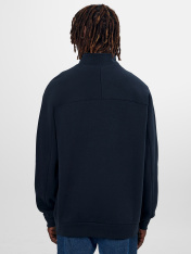 Толстовка изготовлена из трикотажного полотна._x000D_ Толстовка свободного силуэта. _x000D_ Горловина круглой формы с отрезным воротником стойкой из основного полотна._x000D_ Рукава втачные длинные. Линия плеча слегка спущена. По низу рукавов отрезные манжеты из рибаны._x000D_ По спинке отрезная кокетка, состоящая из двух частей, цельнокроёная с верхней частью рукавов. _x000D_ Центральная застежка на молнию._x000D_ По низу изделия отрезной пояс из рибаны.