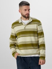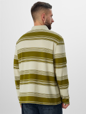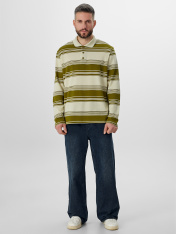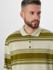 Мужское поло в полоску из мягкого хлопкового пике — удобный и стильный вариант на каждый день. Свободный крой и длина до середины бедра позволяют двигаться без стеснения. Материал пике — это особое плетение нитей, создающее легкую текстурированную поверхность, которая отлично пропускает воздух и сохраняет форму.<br>_x000D_ Классическая застежка на трёх пуговицах выглядит аккуратно и стильно. Все внутренние швы и воротник обработаны мягкой тесьмой — это обеспечивает дополнительный комфорт при носке. Манжеты и низ изделия аккуратно подшиты. Модель сочетает классические полоски с элегантным жаккардовым узором — такая деталь добавляет образу индивидуальности._x000D_ <br>_x000D_ Поло не мнётся, хорошо дышит и сохраняет форму весь день. Его можно надеть в офис, на встречу или на прогулку — он будет уместен в любой ситуации. Простота ухода и универсальность делают его надежным выбором для вашего гардероба.