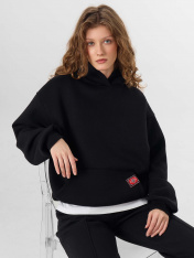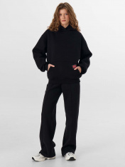 Худи женское свободного силуэта. Перед и спинка цельнокроеные._x000D_ Рукав втачной, длинный, спущенный. По низу изделия и рукавов пояс и манжеты из рибаны. Худи с капюшоном и накладным карманом спереди. _x000D_ _x000D_