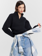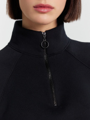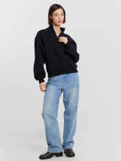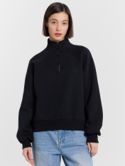 Женский джемпер на молнии — воплощение уютной элегантности. Модель выполнена из мягкого футера с начесом, который нежно согревает и дарит комфорт в прохладные дни. Свободный крой обеспечивает полную свободу движений, а высокая горловина-стойка с застежкой добавляет практичности для повседневного использования. _x000D_ Объемные длинные рукава с эластичными манжетами подчеркивают современный дизайн, а нежный молочный оттенок легко сочетается с любой базой гардероба. Универсальность джемпера позволяет создавать разнообразные образы — от повседневных луков с джинсами до более собранных комплектов с брюками или юбками.<br>_x000D_ <br>_x000D_ Идеальный выбор для прогулок, встреч с друзьями или отдыха — в этом джемпере вы будете чувствовать себя уютно и стильно в любой ситуации. Практичный состав сохраняет форму и мягкость после множества стирок. _x000D_ _x000D_
