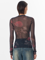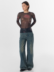 Женский джемпер из сетки — дерзкий и изысканный вариант для создания актуальных образов. Прилегающий силуэт из эластичного сетчатого материала мягко повторяет контуры фигуры, играя на контрасте полупрозрачности и утонченной элегантности. Круглая горловина и длинные рукава формируют лаконичные линии, а специально оставленные необработанные срезы по низу и на манжетах придают модели современный шарм.<br>_x000D_ <br>_x000D_ Этот джемпер станет идеальным спутником для вечерних мероприятий — он беспроигрышно смотрится в паре с кожаными брюками, юбками или джинсами с завышенной талией._x000D_ В этом джемпере вы почувствуете себя уверенно и притягательно — он идеально передает баланс между скрытым обаянием и современной эстетикой._x000D_