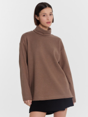 Женский джемпер свободного силуэта. Длинные рукава со спущенной линией плеча и воротник-стойка придают изделию стильный и уютный вид. По низу модели расположены два декоративных разреза, добавляющих нотку элегантности. Материал селаник, из которого выполнено изделие, известен своими исключительными свойствами: он мягкий, теплый, долговечный и прекрасно сохраняет форму, что делает этот джемпер идеальным выбором для комфортного ношения в любую погоду.