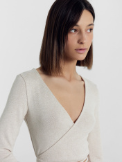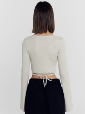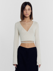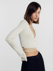 Элегантный женский укороченный джемпер, способный преобразить любой ваш образ и подчеркнуть утонченность и изящество вашей фигуры. Выполнен из вискозы - невероятно мягкого, дышащего и приятного к телу материала, который дарит ощущение комфорта на протяжении всего дня. Прилегающий силуэт деликатно подчеркнет достоинства фигуры. Передняя деталь на запах с завязками и V-образный вырез горловины добавляют модели особую изюминку. Длинные рукава, расширяющиеся к низу, придают джемперу стиля. Невероятно удобный и модный — лучший выбор для теплого времени года. Широкий размерный ряд. Рекомендуем!