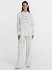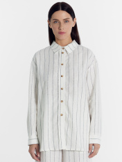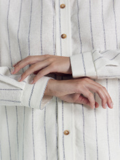 Новинка из коллекции Premium Linen — стильная рубашка женская свободного силуэта. Выполнена изо льна и района. Горловина круглой формы, воротник с отрезной стойкой из основной ткани. Плечо спущено, пройма углублена. Рукав длинный, с односторонней складкой по низу. По низу рукава - отрезная манжета из основной ткани. Центральная застежка на пуговицы. Красивая и невероятно комфортная модель для солнечных, жарких дней. Дополнить можно низом в тон из льняной коллекции для женщин. Широкий размерный ряд. Рекомендуем!