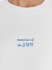 Осенняя новинка из базовой коллекции MF — стильный женский свитшот свободного силуэта с печатью в виде надписи "Memories of the sun / Воспоминания о солнце". Выполнен из футера без подчеса. В составе изделия 100% хлопок. Горловина круглой формы из рибаны. Плечо спущено, пройма углублена. Рукав, объемный, длинный. По низу рукава отрезная манжета из рибаны. Собирается и образует складки - можно красиво драпировать. Комфортная модель для повседневной носки. Отличный вариант для весны, лета и демисезона. Широкий размерный ряд. Рекомендуем!