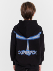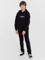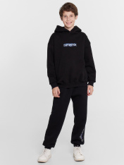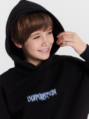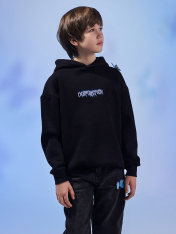 Худи для мальчиков, выполненное из мягкого футера с подчесом. Модель свободного кроя с капюшоном и длинными рукавами обеспечивает максимальный комфорт и уют в прохладные дни. Капюшон добавляет дополнительную защиту от холода, а спущенная линия плечаи эластичные манжеты по низу рукавов создают стильный акцент и удобство. Спереди карман кенгуру, который добавляет функциональности и стиля. Это худи станет отличным выбором для активного отдыха и повседневного ношения, сочетая в себе стиль и практичность.