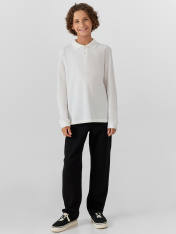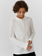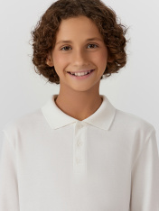 Поло для мальчиков прямого силуэта._x000D_ Рукава втачные длинные, с отрезными манжетами из рибаны. Плечо слегка спущено._x000D_ Горловина округлый формы с рубашечным воротником из довяза DOV- 10_x000D_ По переду обработана застежка на петли и пуговицы d=10 mm. Верхняя планка цельнокроеная._x000D_ _x000D_