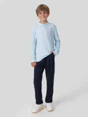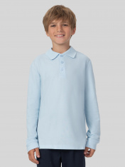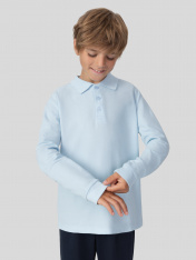 Поло для мальчиков прямого силуэта._x000D_ Рукава втачные длинные, с отрезными манжетами из рибаны. Плечо слегка спущено._x000D_ Горловина округлый формы с рубашечным воротником из довяза DOV- 10_x000D_ По переду обработана застежка на петли и пуговицы d=10 mm. Верхняя планка цельнокроеная.