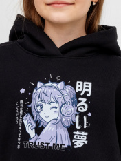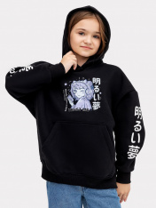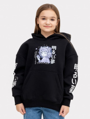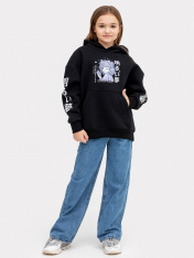 Стильное детское худи свободного силуэта с капюшоном для девочек в интересной и оригинальной расцветке. Выполнено из футера с теплым подчесом. Горловина округлой формы. Капюшон со средним швом, на подкладке. Плечо спущено, рукав втачной длинный. По низу рукава отрезная манжета из рибаны. Мягкая и невероятно комфортная модель для повседневной носки в школу, для внеклассных занятий и как базовая одежда на каждый день. Дополнить такой джемпер можно юбкой, брюками и другими вещами из детского гардероба. Широкий размерный и цветовой ряд. Рекомендуем!