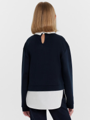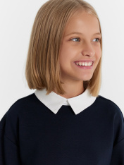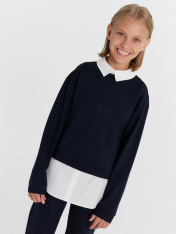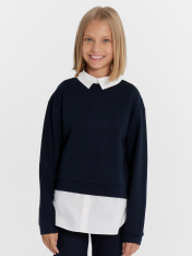 Школьный джемпер для девочек свободного силуэта из академика с имитацией рубашки. Выполнен из качественного материала академик, который обеспечивает комфорт и долговечность изделия. Горловина джемпера круглая и оформлена воротником-стойкой. Застежка-капелька на пуговице на спинке позволяет легко надевать и снимать его. Плечо спущено, пройма углублена и обеспечивает свободу движений и комфорт при носке. Рукава - длинные с манжетами. По низу изделия находится декоративная вставка из текстиля, которая имитирует рубашку. Этот элемент придает джемперу школьный и аккуратный вид. Вставка оформлена пуговицами. Подходит для повседневной носки и легко сочетается с другими элементами школьной формы или обычной одежды. Рекомендуем!