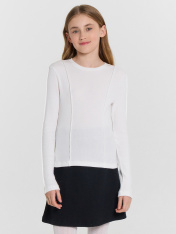 Лонгслив для девочек прилегающего силуэта — это базовая и комфортная модель, идеально подходящая для школы, прогулок и повседневной носки. Круглый вырез горловины оформлен аккуратной обработкой швом вподгибку, что сохраняет форму и подчеркивает качество пошива. Длинные рукава обеспечивают тепло и защиту в прохладную погоду, а прилегающий крой мягко повторяет линии тела, не ограничивая движений. Изделие выполнено из хлопковой рибаны — эластичного трикотажного полотна с фактурной поверхностью, которое отличается мягкостью, воздухопроницаемостью и устойчивостью к деформации. Такая ткань приятна к телу и хорошо сохраняет форму даже после многократных стирок. Лонгслив легко сочетается с брюками, юбками, сарафанами и жилетами, позволяя создаватькак повседневные, так и более нарядные образы.