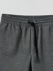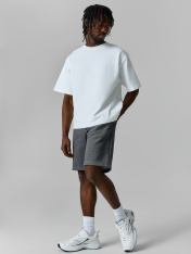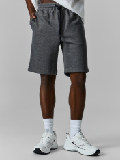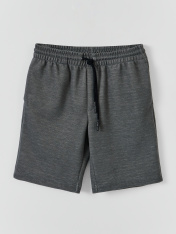 Шорты изготовлены из трикотажного полотна интерлок._x000D_ Шорты прямого силуэта._x000D_ Пояс цельнокроеный с эластичной тесьмой внутри. С внешней стороны пояса пробиты петли и втянут шнур с узлом на концах и с термоусадочной трубкой ._x000D_ В боковых швах обработаны карманы, подкладка кармана из основного полотна._x000D_ На левой передней половинке проложена декоративная строчка - имитация гульфика._x000D_ Низ шорт с отворотами._x000D_