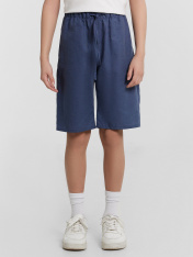 Эти шорты для мальчиков идеально подходят для комфорта и стильного повседневного образа. Модель с классической линией талии и прямым силуэтом обеспечивает удобную посадку и свободу движений. Эластичный пояс добавляет практичности, позволяя легко подогнать шорты под размер. Карманы, расположенные в боковых швах, добавляют функциональности, а аккуратная обработка низа швом в подгибку придает изделию завершенный вид. Модель, выполненная из смеси льна и хлопка, обладает мягкостью, воздухопроницаемостью и долговечностью, что делает ее идеальной для активного отдыха или летних прогулок. Легкость и высокое качество материалов делают эти шорты превосходным выбором для юных ценителей стиля!_x000D_