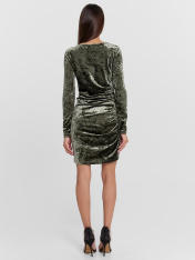 Эффектное велюровое платье прилегающего силуэта - идеальный выбор для создания праздничных вечерних образов. Асимметричный вырез горловины и драпировка в правом боковом шве добавляют уникальности и изысканности этой модели. Это красивое и стильное платье станет вашим верным спутником на корпоратив, вечеринку или Новый год. Дополните его аксессуарами и изящной обувью на шпильке, чтобы создать завершенный и утонченный образ. Мы уверены, что в этом мини-платье вы будете выглядеть восхитительно и привлекать восхищенные взгляды. Рекомендуем!_x000D_
