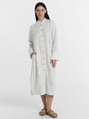 Элегантное и практичное платье из премиального льна и района станет отличным выбором для жарких летних дней. Легкая ткань обеспечит максимальный комфорт и свободу движений. Натуральное льняное волокно обладает превосходными дышащими свойствами, что делает эту модель идеальной для жары. Свободный силуэт и длина ниже колена выглядят стильно и модно. Длинные рукава с манжетами гарантируют защиту от палящего солнца. Платье имеет горловину круглой формы с отрезной стойкой. Низ изделия фигурный, по бокам - функциональные карманы. Благодаря простому, лаконичному дизайну, оно легко комбинируется с самыми разными аксессуарами. Широкий размерный ряд. Лучший вариант как для прогулок, так и для семейных торжеств или отпускных поездок.