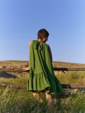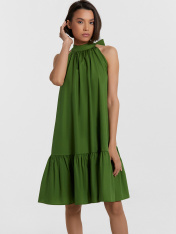 Изящный женский сарафан А-силуэта — стильное и воздушное решение для повседневных образов, сочетающее элегантность и комфорт. Свободный крой создает легкость и непринужденность, а длина выше колена подчеркивает женственность и универсальность модели. Воротник-стойка плавно переходит в завязки на спине, добавляя изысканный акцент, а углубленные проймы обеспечивают комфорт и свободу движений. Спинка со средним швом придает структуру и гармонично дополняет силуэт. Широкая рюша по низу платья делает образ нежным и романтичным, добавляя легкости дизайну. Нижние срезы обработаны швом вподгибку, что обеспечивает аккуратность и долговечность изделия. Выполненный из хлопка, сарафан обладает мягкостью, воздухопроницаемостью и приятными тактильными свойствами, идеально подходя для жаркого сезона и комфортного ношения!