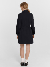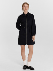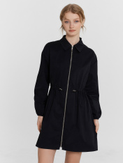 Эффектное мини-платье свободного кроя разнообразит ваш гардероб. Изготовленное из смесового хлопка, оно сочетает в себе комфорт и современный стиль. Стояче-отложной воротник и длинные рукава придают образу изысканность, а спущенная линия плеч гарантирует свободу движений. Присборенная талия подчеркивает фигуру и создает женственный силуэт, а центральная застежка на молнию обеспечивает удобство. Это платье идеально подойдет для любого случая, добавив вашему гардеробу нотку элегантности и удобства. Данная модель предназначена для эпизодического использования.