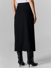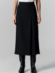 Юбка прямого кроя — это воплощение сдержанной элегантности и универсальности. Её удлинённый силуэт миди и чёткие линии создают вытянутый, стройный образ, который одинаково уместен для офиса, деловой встречи или вечернего выхода. Модель трапеция с лаконичными складками добавляет динамики и объёма, сохраняя при этом чувство строгости и стиля.<br>_x000D_ <br>_x000D_ Юбка выполнена из смесовой ткани с добавлением эластана, что обеспечивает материалу мягкость, лёгкое облегание и способность идеально держать форму в течение всего дня. Удобная средняя посадка комфортно фиксируется на талии, а потайная застёжка-молния сзади сохраняет чистоту линий. <br>_x000D_ <br>_x000D_ Эта юбка станет ключевым элементом базового гардероба. Она безупречно сочетается с классическими блузами, лаконичными топами, строгими жакетами или объёмными свитерами, позволяя создавать множество образов — от безупречно деловых до современных минималистичных. _x000D_