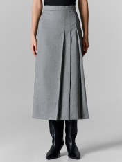 Юбка прямого кроя — это воплощение сдержанной элегантности и универсальности. Её удлинённый силуэт миди и чёткие линии создают вытянутый, стройный образ, который одинаково уместен для офиса, деловой встречи или вечернего выхода. Модель трапеция с лаконичными складками добавляет динамики и объёма, сохраняя при этом чувство строгости и стиля.<br>_x000D_ <br>_x000D_ Юбка выполнена из смесовой ткани с добавлением эластана, что обеспечивает материалу мягкость, лёгкое облегание и способность идеально держать форму в течение всего дня. Удобная средняя посадка комфортно фиксируется на талии, а потайная застёжка-молния сзади сохраняет чистоту линий. <br>_x000D_ <br>_x000D_ Эта юбка станет ключевым элементом базового гардероба. Она безупречно сочетается с классическими блузами, лаконичными топами, строгими жакетами или объёмными свитерами, позволяя создавать множество образов — от безупречно деловых до современных минималистичных. _x000D_