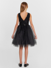 Роскошное, нарядное детское платье для девочек из высококачественного материала. Модель полуприлегающего силуэта с отрезной пышной трехслойной юбкой. Длина выше колена. Горловина по переду круглая, а по спинке с V-образным вырезом. Лиф изделия выполнен из трикотажной сетки со сверкающими пайетками. Есть также комфортная подкладка из натурального хлопка. Красивое и невероятно стильное платье украсит девочку на любом празднике и мероприятии. А еще, это отличный выбор для для рождения и Нового года. Рекомендуем!