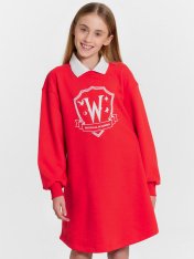 Трикотажное платье для девочек - сочетание комфорта и элегантности. Круглая горловина и втачной классический воротник придают модели изысканный вид, а длинные рукава со спущенной линией плеча и эластичными манжетами обеспечивают свободу движений и дополнительное удобство. Асимметричный низ добавляет оригинальности и современности. Изделие выполнено из футера без подчеса - плотного и износостойкого материала, который хорошо сохраняет форму и устойчив к многократным стиркам. Он обеспечивает отличную воздухопроницаемость, позволяя коже дышать, что особенно важно для детской одежды. Такой материал гипоаллергенен и мягок на ощупь, создавая комфортные ощущения при носке. Это платье станет незаменимой частью гардероба каждой девочки, предлагая ежедневный комфорт и стиль. _x000D_