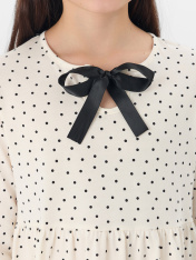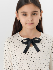 Платье для девочки с принтом в горошек — это элегантность и лёгкое очарование для особых моментов. Оно выполнено из натурального хлопка, который обеспечивает комфорт, мягкость и хорошую воздухопроницаемость в течение всего дня._x000D_ Полуприлегающий силуэт с круглой горловиной и декоративным вырезом создает утонченный и аккуратный вид. Длинные рукава и два воздушных волана по переду и спинке добавляют образу динамики и нежности. <br>_x000D_ <br>_x000D_ Состав из хлопка гарантирует гипоаллергенность, натуральность и простоту в уходе, сохраняя форму и яркость рисунка. _x000D_ <br>Это платье станет прекрасным выбором для праздника, семейного торжества или любого дня, когда хочется чувствовать себя самой нарядной и уверенной._x000D_