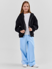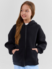 Толстовка для девочек свободного силуэта — это уютная и стильная модель, которая станет любимым элементом гардероба в прохладные дни. Капюшон придает изделию спортивный характер и обеспечивает дополнительную защиту от ветра, а круглая горловина оформлена лаконично и комфортно. Спущенное плечо и длинные рукава с эластичными манжетами из рибаны создают расслабленный, стильный силуэт, не сковывающий движений. Центральная застежка на молнию — практичное решение, которое делает модель удобной в носке, а накладные карманы-кенгуру добавляют функциональности и визуальной симметрии. Отрезной пояс из рибаны аккуратно фиксирует посадку, подчеркивая форму, но не создавая давления. Изделие выполнено из футера с подчесом — теплого, мягкого материала, который приятно ощущается на коже и сохраняет тепло даже в прохладную погоду. Толстовка легко комбинируется с джинсами, легинсами или спортивными брюками, подойдет для школы, прогулок или отдыха дома.