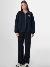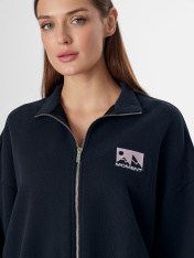 Женская толстовка на молнии с надписью «Момент» — идеальный спутник для ваших самых ярких дней. Свободный оверсайз крой и воротник-стойка, облегающий шею, надежно защищает от ветра и прохлады, даря ощущение комфорта. Длинные рукава с эластичными манжетами и поясом из рибаны мягко облегают фигуру, подчеркивая стильный силуэт._x000D_ Металлическая молния и удобные боковые карманы с нежной подкладкой делают каждую деталь продуманной до мелочей. Толстовка выполнена из хлопка — натуральный материал обеспечивает коже идеальный микроклимат, мягко согревая в прохладу и оставаясь приятным к телу даже при длительной носке. <br>_x000D_ <br>_x000D_ Толстовка легко сочетается с любой одеждой, создавая гармоничные образы для прогулок, встреч с друзьями или отдыха на природе. В этой толстовке вы будете чувствовать себя легко и уверенно в каждом моменте._x000D_