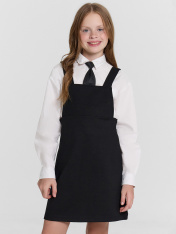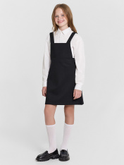 Сарафан для девочек — идеальный вариант для школы: удобный, аккуратный и с продуманными деталями. Мягкая сборка на спинке в районе талии обеспечивает комфортную посадку и позволяет свободно двигаться в течение дня. Лиф с отделочными строчками добавляет аккуратности, а расширенная юбка делает образ более легким и динамичным. Регулируемые бретели на пуговицах позволяют подстроить длину по росту ребенка, что особенно удобно в процессе роста. Низ сарафана аккуратно обработан швом в подгибку с закрытым срезом — такая отделка сохраняет эстетичный вид и устойчивость к износу. Материал "академик" отличается прочностью и хорошо держит форму, поэтому изделие остается опрятным даже после многократных стирок.