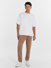 Брюки-джоггеры мужские из высококачественного хлопка свободного силуэта. Из особенностей – два вместительных кармана без застежек, шнурок-затяжка на поясе. Низ брюк подложен с эластичной тесьмой. Посадка у брюк мужских - средняя. Красивый и стильныйвариант для повседневной носки. В таких брюках можно пойти на работу в офис, в школу, университет, отправиться в отпуск или путешествие. Дополнить брюки легко и просто красивым верхом из нашей базовой линейки мужской одежды. Модель представлена в разных цветах, размерный ряд широкий. Изделия износостойкое, не линяет и не выцветает при многочисленных стирках, не деформируется в процессе носки. Рекомендуем!