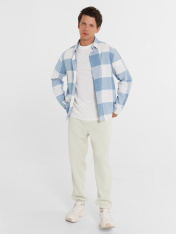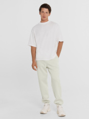 Брюки мужские из трикотажного футера с теплым подчесом. Силуэт прямой. Нижние срезы подогнуты, с эластичной тесьмой, которая образует сборочки. Есть удобные боковые карманы. Пояс со шнурком-затяжкой. Комфортная модель брюк!