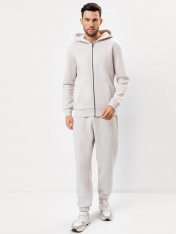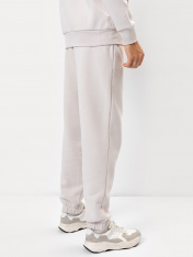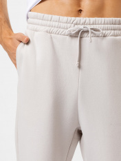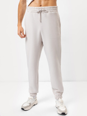 Брюки из трикотажного футера с теплым подчесом. Силуэт свободный. Линия талии классическая. Сидение немного спущено. Есть удобные боковые карманы. Пояс с эластичной тесьмой и регулировочным шнурком-затяжкой. Низ брюк подогнут, с эластичной тесьмой. Удобные брюки – рекомендуем!