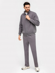 Прямые свободные мужские брюки. Выполнены из легкого трикотажного футера с подчесом. Пояс – с эластичной тесьмой внутри и шнурком-завязкой, который позволяет регулировать ширину в талии. Есть удобные боковые карманы. Гульфик – не функциональный. Брюки снизу подогнуты. Стильные и комфортные брюки мужские для ежедневной носки. Натуральный материал в составе позволяет использовать данные брюки в любое время года. Дополнить можно стильным верхом на свой вкус. Брюки удобные и практичные, хорошо подойдут на любой тип мужской фигуры. Рекомендуем!