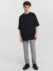 Мужские брюки из интерлока – идеальное сочетание комфорта и стиля. Эта модель прямого силуэта, слегка зауженная к низу, подчеркивает современный и актуальный дизайн. Пояс с эластичной кулиской обеспечивает оптимальную посадку и комфорт в течение всего дня. Карманы в боковых швах добавляют практичности и функциональности, а отвороты на низу брюк придают завершенный и стильный вид. Эти брюки станут отличным дополнением к вашему повседневному гардеробу, позволяя выглядеть элегантно и уверенно в любой ситуации.