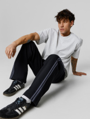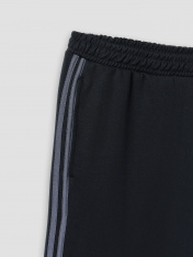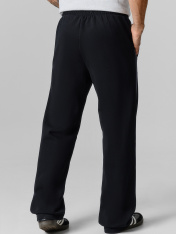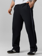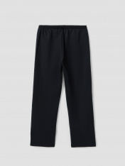 Брюки прямые. Боковые карманы в боковом шве. Пояс с эластичной тесьмой внутри. Шнур 10 PXC-1 с застроченными концами выводится через петли на внутренней части пояса.В области бокового шва лампасы.Нижние срезы брюк обработаны швом вподгибку на 2х игольной плоскошовной машине.