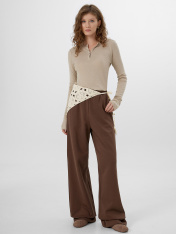 Женские брюки свободного силуэта — это универсальная модель, сочетающая в себе комфорт, практичность и элегантную простоту. Изделие выполнено из интерлока — мягкого, плотного трикотажного материала, который отличается высокой износостойкостью, приятной текстурой и способностью сохранять форму даже после многократных стирок. Такая ткань обеспечивает комфорт в течение всего дня и подходит для любого времени года. Пояс с высокой посадкой выполнен из эластичного материала, благодаря чему брюки надежно фиксируются на талии, не сдавливая и не ограничивая движения. Это особенно удобно при активном образе жизни или длительном пребывании в брюках. Боковые карманы добавляют функциональности, позволяя носить с собой необходимые мелочи, а также придают образу расслабленный, повседневный характер. Низ изделия аккуратно обработан швом вподгибку, что делает силуэт завершенным и подчеркивает качество исполнения. Эти брюки легко подойдут как для домашнего уюта, так и для прогулок, поездок и неформальных встреч._x000D_ _x000D_ _x000D_ _x000D_ _x000D_ _x000D_ _x000D_ _x000D_