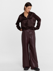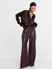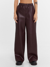 Представляем трендовую новинку осеннего сезона в актуальном цвете — стильные брюки женские свободного силуэта из трикотажного полотна "под кожу". Пояс отрезной из основного полотна с эластичной тесьмой внутри. На передних деталях выполнены карманы сотрезным бочком и горизонтальные членения над коленом. По членениям проложены отделочные строчки. Стильный вариант женских брюк из экокожи, который отлично подойдет для городских образов. Выбирайте их для работы в офисе, учебы в университете, на встречу и даже праздничное мероприятие. Дополнить брюки можно красивым верхом из линейки базовой одежды для женщин. Рекомендуем!