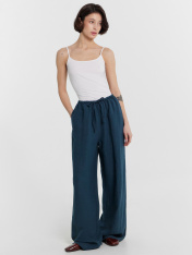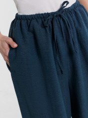 Женские брюки свободного силуэта станут идеальным дополнением вашего гардероба. Модель с эластичным поясом на кулиске и боковыми карманами обеспечивает максимальный комфорт и практичность в носке. Эти брюки выполнены из натурального льна и вискозы, что делает их особенно приятными к телу. Натуральный лен известен своими дышащими свойствами и способностью сохранять прохладу в жаркую погоду. Он также гипоаллергенен и экологически чист. Вискоза, в свою очередь, добавляет ткани мягкость и легкий блеск, обеспечивая дополнительный комфорт и стиль. Такие брюки идеально подойдут для создания как повседневных, так и более нарядных образов.