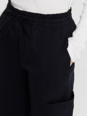 Ультрамодные женские брюки полной длины из высококачественного хлопка. Силуэт прямой, свободный. Пояс эластичный с регулировочным шнурком. Есть накладные функциональные карманы для мелочей. Невероятно стильные и комфортные брюки, которые помогут создать лаконичные образы в офис на работу, учебу или для прогулок по городу. Дополнить можно рубашкой, джемпером или свитшотом на свой вкус из линейки базовой женской одежды. Широкий размерный и цветовой ряд. Рекомендуем!
