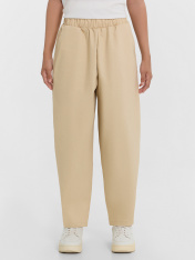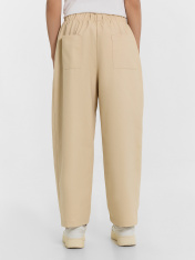 Брюки прямые свободные (оверсайз), слегка зауженные к низу. Сидение спущено. _x000D_ Пояс отрезной с эластичной тесьмой внутри 50RV. В боковых швах обработаны карманы, подкладка кармана из основного полотна. На задней детали накладной карман. _x000D_ По низу брюки обработаны швом вподгибку._x000D_