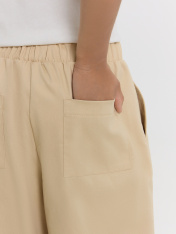 Брюки для мальчиков прямого свободного кроя — это удобная и универсальная модель, подходящая как разнообразных образов. Слегка зауженные к низу штанины придают силуэту аккуратность и современный вид, не ограничивая свободу движений. Эластичный пояс обеспечивает комфортную посадку и легко адаптируется под особенности фигуры ребенка. Боковые карманы с подкладкой из основного полотна практичны и удобны для хранения мелочей, а накладной карман на задней детали добавляет функциональности и завершенности образу. Низ брюк аккуратно обработан швом в подгибку, что подчеркивает качество исполнения и сохраняет форму изделия. Смесовый хлопок в составе ткани делает брюки мягкими, прочными и устойчивыми к износу, обеспечивая комфорт в течение всего дня.