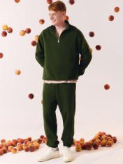 Мужской костюм из мягкого футера с начесом станет вашим надежным спутником в повседневной жизни. Этот гармоничный комплект, состоящий из толстовки и брюк, создан для тех, кто ценит комфорт и практичность._x000D_ Толстовка с аккуратным воротником-стойкой иудлиненной линией плеч обеспечивает свободу движений. Эластичная резинка по низу мягко фиксирует силуэт, не сдавливая талию, а продуманный крой спинки позволяет сохранять удобство даже при активном движении. Дополняют образ практичные длинные рукавас манжетами и удобная застежка на молнии.<br>_x000D_ <br>_x000D_ Нежный начес внутри костюма создает уютное ощущение и надежно сохраняет тепло, а преобладание хлопка в составе гарантирует комфорт в течение всего дня. Этот костюм — прекрасный выбор для прогулок,домашнего отдыха или неформальных встреч, где важно чувствовать себя расслабленно и уверенно. _x000D_ _x000D_