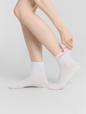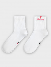 рис.3140 Женские носки средней высоты, с плотным бортом и рисунком в виде сердечка с пикотом на бортике и надписью "Каханне".