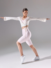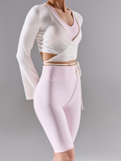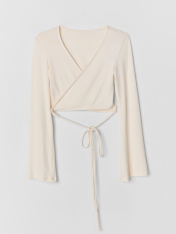 Джемпер женский прилегающего силуэта из трикотажного кулирного полотна 80%вискоза, 17%полиэстер, 3%эластан , 225гр, 160см. PJ-1, PJ-065.01.225._x000D_ Передняя деталь на запах, вырез горловины V-образный. Срез горловины_x000D_ окантован бейкой в чистый край из основного полотна. Рукав втачной, длинный, к низу расширяется._x000D_ Низ джемпера окантован бейкой, которая переходит в длинные завязки._x000D_ Джемпер укорочен._x000D_ _x000D_ _x000D_
