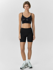 Женский спортивный топ — это функциональная модель, созданная для активных тренировок и абсолютного комфорта. Облегающий силуэт подчеркивает форму, не стесняя движений, а V-образная горловина добавляет выразительности и лёгкости в образ. Топ оснащенсетчатой подкладкой с чашками-вкладышами — для поддержки и уверенности во время занятий спортом. Бейка из основного материала по горловине и проймам визуально объединяет элементы конструкции, а переходящие в бретели с регулировкой — позволяют индивидуально настроить посадку. Фигурный подрез под грудью с эластичной тесьмой мягко фиксирует изделие, придавая дополнительную поддержку и удобство. Нижний край также укреплен швом в подгибку и тесьмой внутри — для надежной фиксации и сохранения формы при движении.