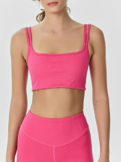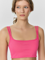 Женский топ из трикотажного интерлока — это комфортная и элегантная модель с акцентом на утонченный силуэт. Плотная ткань мягко прилегает к телу, создавая плавный силуэт без ощущения стесненности. Форма горловины «каре» добавляет изысканности и делает образ визуально открытым и сбалансированным. Бейка из основного материала, переходящая в тонкие бретели, придает аккуратность и обеспечивает мягкую посадку, а подкладка из сетки с чашками-вкладышами создает необходимую поддержку и комфорт. Эластичная тесьма с внутренней стороны нижнего края фиксирует изделие и сохраняет форму даже при активном движении. Топ отлично подходит для создания образов в стиле casual, может быть частью спортивного комплекта или стильного летнего аутфита. ._x000D_ _x000D_ _x000D_