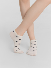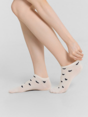 Женские укороченные носочки с узором в виде сердечек — очаровательное дополнение к гардеробу! Изготовленные из мягкого хлопка, они обеспечивают комфортную посадку, приятные тактильные ощущения и отличную воздухопроницаемость.Эластичные волокна в составе пряжи позволяют носочкам мягко облегать ногу, сохраняя форму и удобство при носке. Романтичный узор в виде сердечек добавляет игривый и нежный акцент, делая носочки не только функциональными, но и стильными. Отличный выбор для создания уютного имилого образа!