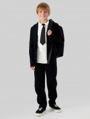 Однобортный жакет для мальчиков прямого силуэта. Без подкладки. С накладными карманами. Рукава двухшовные длинные втачные. Застежка на 2 пуговицы. Низ жакета и рукавов обработан на плоскошовной машине швом в подгибку.
