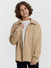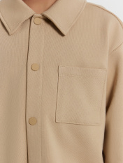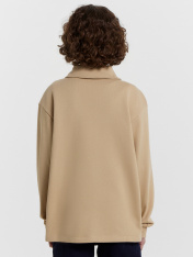 Толстовка свободного силуэта, длиной до линии бедер. Линия плеча спущена, плечевой шов смещен в сторону переда. Вырез горловины округлый с рубашечным воротником. Перед с застежкой на кнопки. Рукава втачные 2х шовные с односторонними складками. Манжеты отрезные. Нижний срез жакета обработан швом вподгибку. 363346-1- с накладным карманом