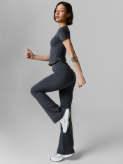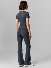 Комплект состоит из джемпера и брюк. Брюки-клеш полуприлегающего силуэта, плотно облегающие бедра и ноги до колен. Пояс с отворотом, отрезной, широкий. Нижние срезы обработаны швом вподгибку._x000D_ Джемпер облегающего силуэта, рукав втачной, короткий.Горловина круглой формы, обтачка горловины из основного полотна. Шов втачивания по горловине закрыт тесьмой из основного полотна. Нижние срезы обработаны швом вподгибку._x000D_ _x000D_ _x000D_